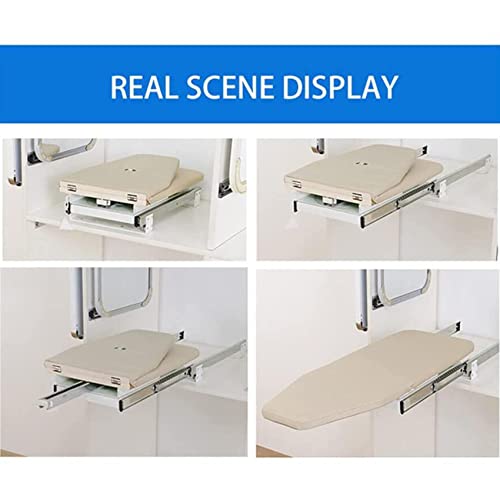 - Can be retracted and folded, can be easily pushed back into the wardrobe when it not in using.Using high-quality pull out ball bearing slides, push and pull up without effort.Function Closet Retractable Pullout sliding Folding buffer Ironing Board for Drawer and Cabinet is Very Easy on Installing,a man or woman can work on itEasy to open & fits perfectly with iron on shelf.It can be installing hidden with a small space in wardrobeRotating 180 degrees with left and ri