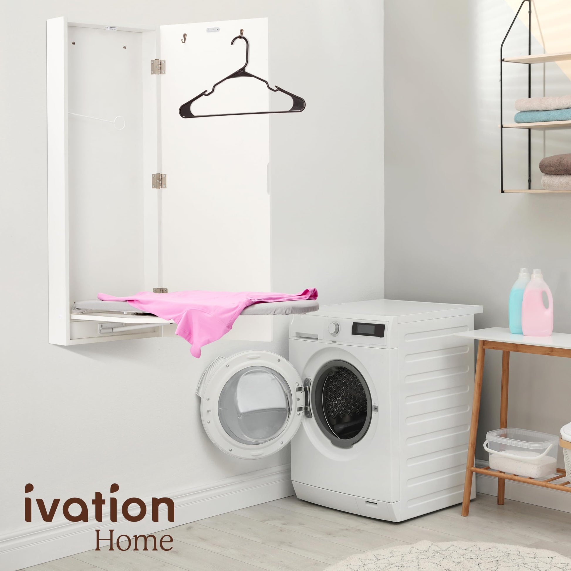 - GARMENT CARE MADE BETTER| Upgrade Your Clothes and Your Laundry Space With a Mounted Ironing Board from Ivation | This Space-Saving Cabinet Set Includes a Full-Sized, Fold-Up Board, and 2 Door Hooks | Pair With Your Favorite Iron or Steamer for an All-Inclusive Clothing Care Center That Fits With Virtually Any Decor