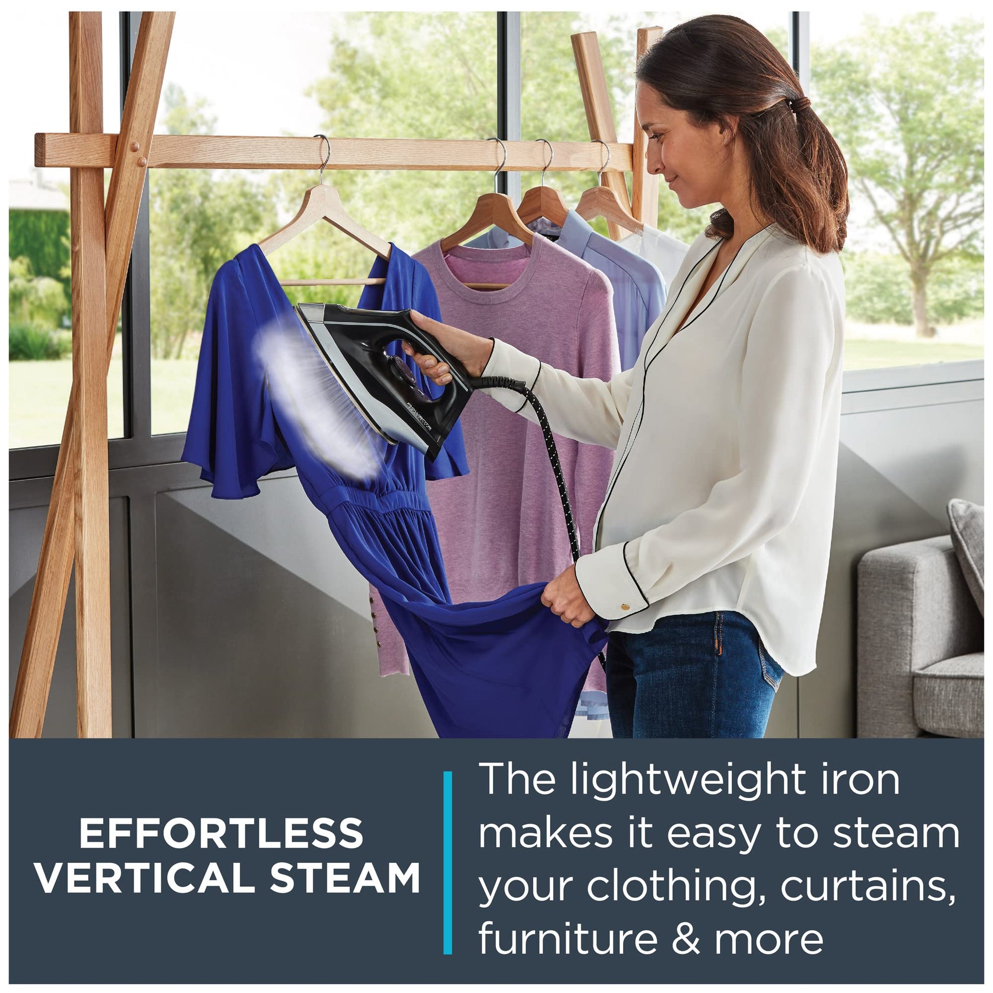 - EXPERT RESULTS: Utilize the lightweight iron to vertically steam your fabrics, and easily access hard-to-reach places like collars and in between buttons with the precision tip.