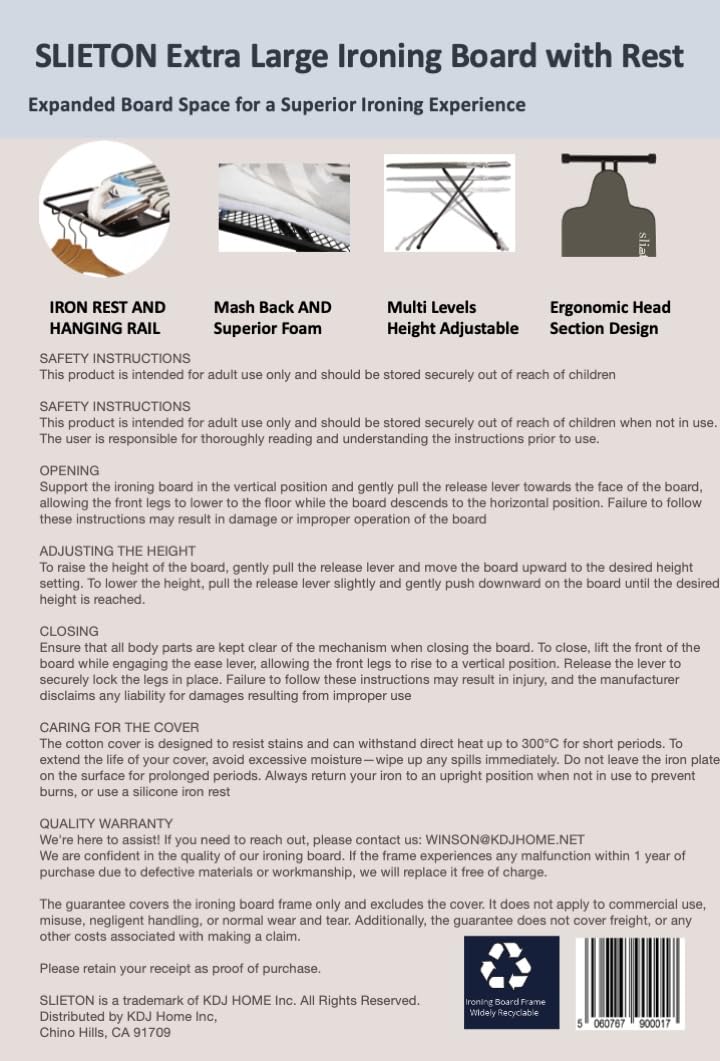 - Biggest Ironing Board on Market - Our extra-wide ironing board stands as one of the widest available on the market today. Its expansive design allows you to effortlessly iron larger sections of fabric in a single stroke, resulting in reduced shuffling and considerable time saved during your ironing chores.